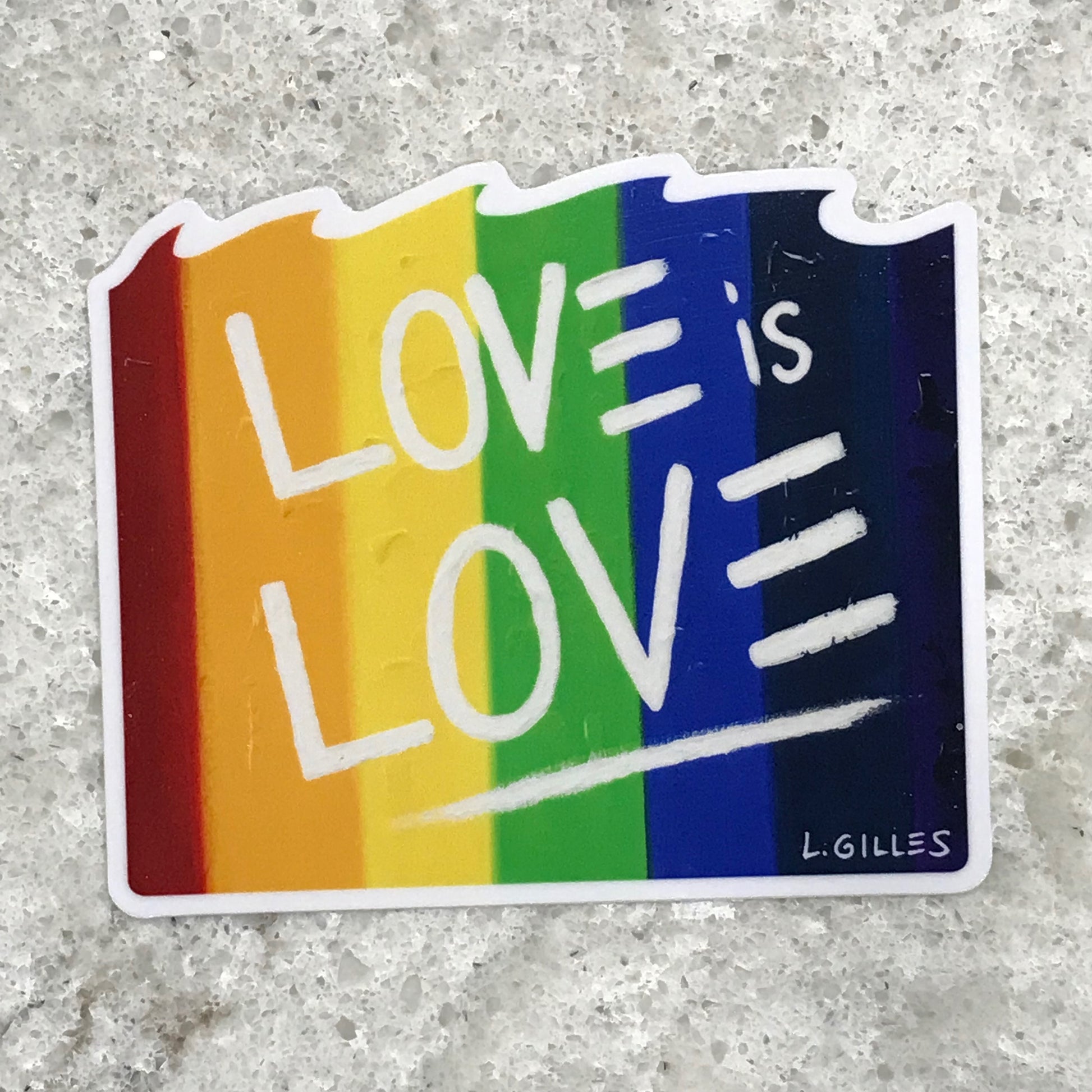 Love IS Love Sticker, Artistic Sticker, Water Bottle Sticker, Laptop Sticker, Notebook Sticker, Modern, Contemporary, Style, Rainbow, Pride, Support, Ally, Fargo, ND, North Dakota, Artist L. Gilles